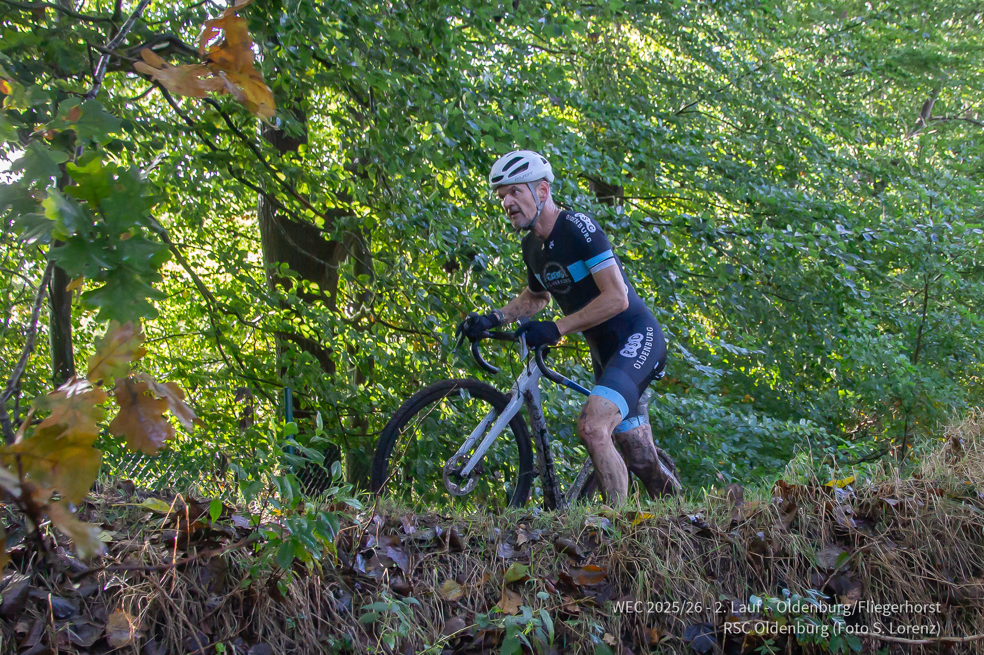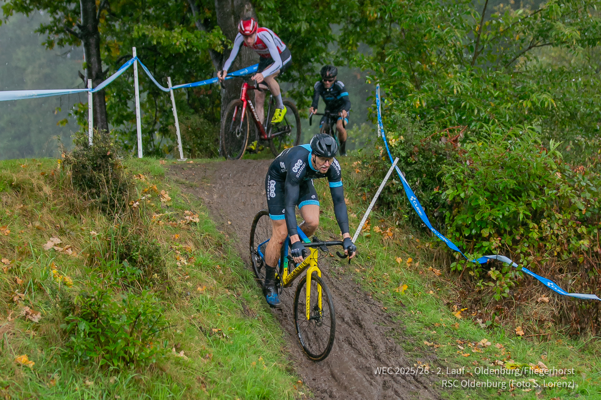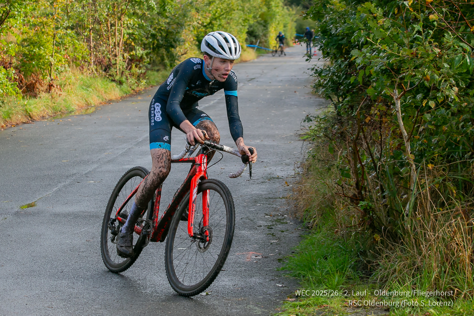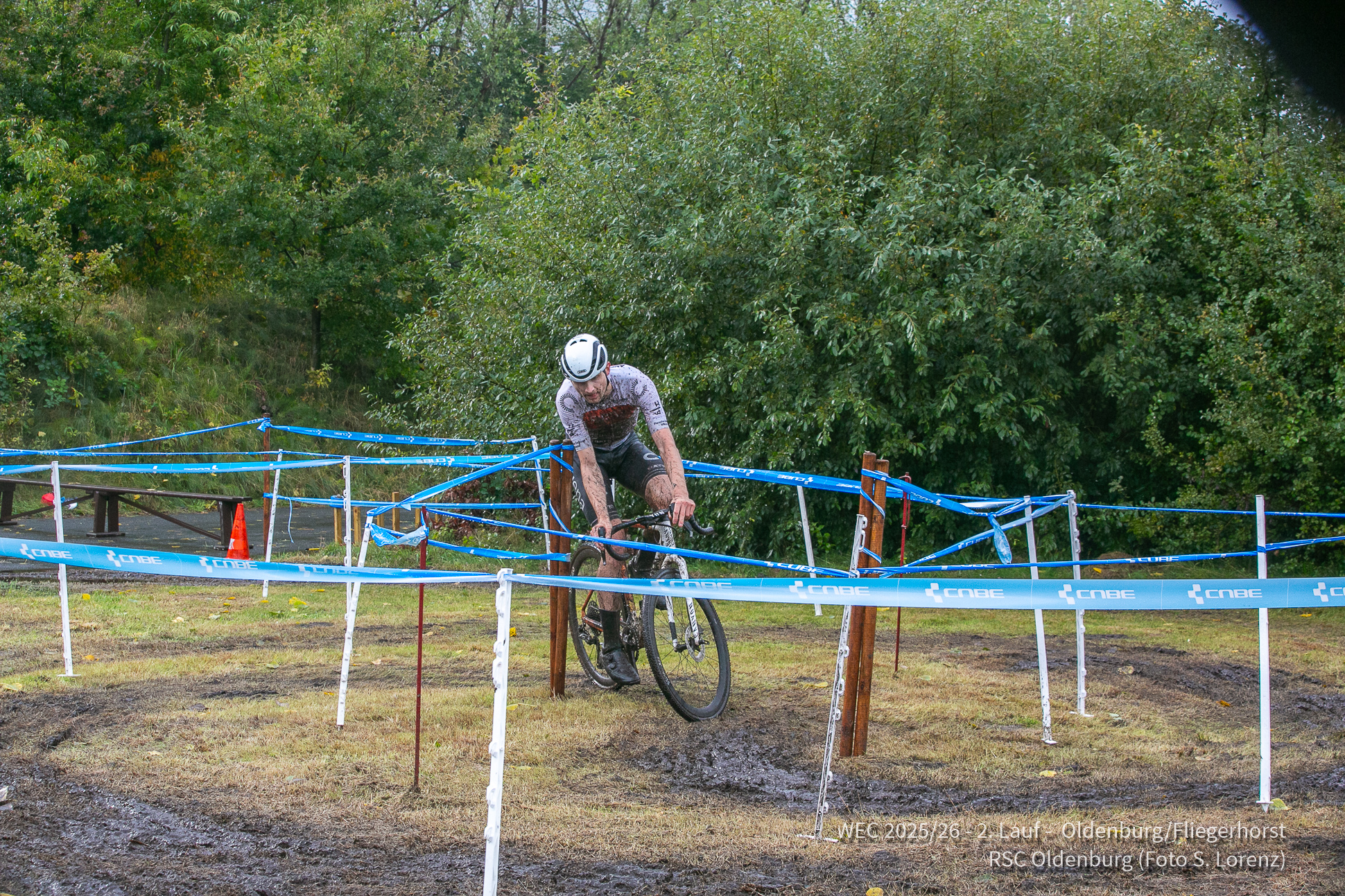 Wie gern hätten wir den Teilnehmer*innen des zweiten Laufs des Weser-Ems-Cups 25/26 gezeigt, warum wir unsere Crossstrecke auf dem Fliegerhorst so lieben: eine schnelle Strecke mit technischen Kurven, einer fetzigen Achterbahn, zahlreichen kurzen, knackigen Anstiegen, das Ganze gelegen zwischen Wiesen, Büschen und Bäumen – eigentlich geht es nicht besser.